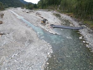 “However, it is expensive,” says Guraan. “In addition, in our case we also had a short window during which we could work in the riverbed and the DFO doesn’t like putting riprap into a river.”