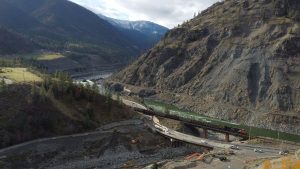 “The event caused extremely high stream flow on the Nicomen River, a tributary of the Thompson River, which led to significant damage to the Highway 1 Nicomen River Bridge,” says Kiewit design manager Matthew Lea. “The rain also eroded the riverbank, undermining the footings of the southernmost pier and resulting in settlement that damaged the overall structure.”